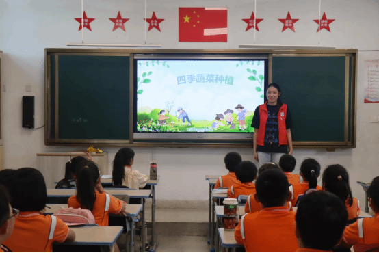 本次活动以“深耕‘易’耨”为主题,精心设计了“课堂教学”与“田间实践”两个环节。在附属小学的四个班级教室里,我院志愿者化身“劳动讲师”,通过生动的讲解和富有趣味的互动,为小学生们普及了常见蔬菜的种类,并细致讲解了从选种到培育的菜园种植全流程知识,将“耕种”这一概念转化为可知、可感的实用技能。