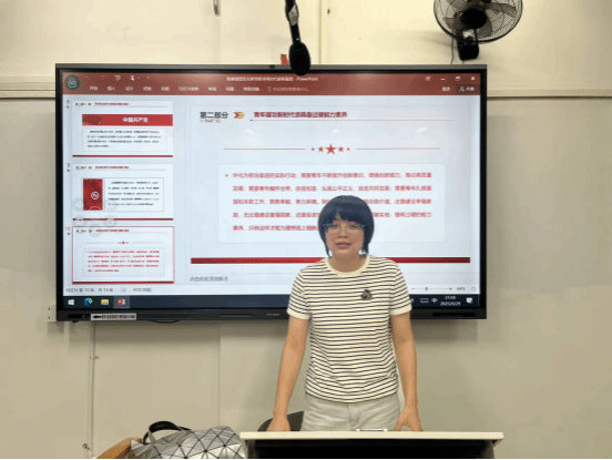 高婧怡老师以《赓续团员光荣传统,书写时代崭新篇章》为题展开授课。她系统梳理了共青团自诞生以来的光荣传统,从革命时期的抛头颅洒热血,到建设时期的艰苦奋斗、无私奉献,再到新时代青年在科技创新、社会服务中的先锋模范作用,清晰地勾勒出一代代团员青年与国家同呼吸、与民族共命运的壮丽画卷。高婧怡老师强调,在学习上,要追求卓越,夯实专业基础;在实践中,要勇于担当,积极投身志愿服务、社会实践等活动,以实际行动传承光荣传统,在新时代的广阔舞台上书写属于青年一代的崭新篇章。