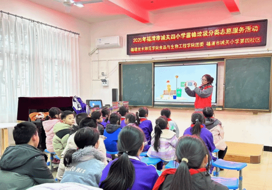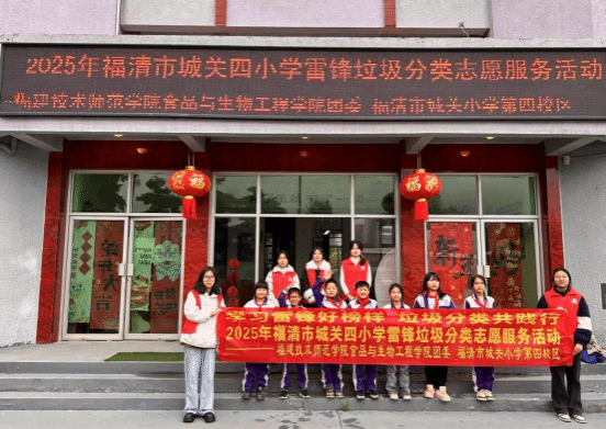 3月5日学雷锋纪念日当天,2022级烹饪与营养教育1班志愿者走进福清市城关小学第四校区,联合开展“学习雷锋好榜样——垃圾分类共践行”志愿活动,实现食品专业优势与环保教育的深度融合。