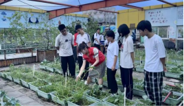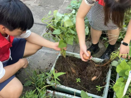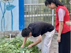 随后,大家移步至校园天台开展劳动教育实践课。志愿者们首先向同学们细致演示分株的具体方法与注意事项,随后带领大家共同投入到除草的劳动中,用双手清理田间杂草,为作物生长创造良好环境。