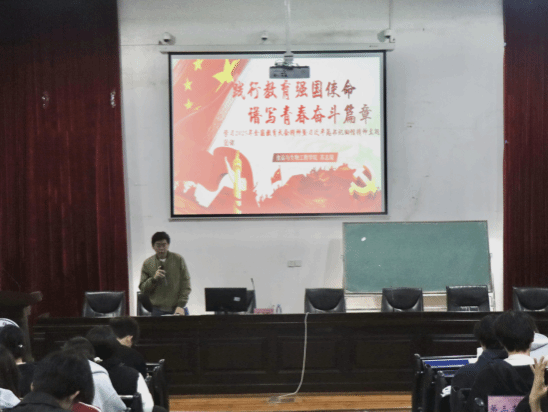 为引导团员青年将个人理想融入国家发展大局,以青春担当时代重任,2025年11月30日晚,我院于向高园报告厅(一)举办“践行教育强国使命,谱写青春奋斗篇章——学习2025年全国教育大会精神暨习近平总书记重要回信精神”主题团课。本次团课由苏志琛老师主讲,全体团学干部和入团申请人参与学习。