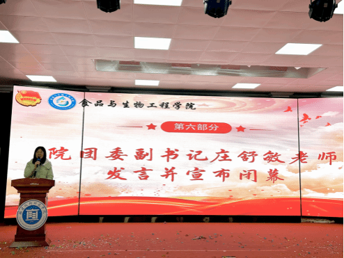 为巩固团学干部培训成果,提升学生骨干的责任意识与履职能力,进一步推动学院团学工作提质增效,2025年12月21日晚,我院第五届团学干部培训闭幕式在金泰学术报告厅隆重举行。院党委副书记(主持工作)项雷文教授、院团委副书记庄舒敏,2025级辅导员冯敬杰,2025级烹饪与营养教育(师范)专业班主任郑炫彬、朱晓婷应邀出席。院学生会主席团成员、2024级及2025级全体学生干部共同参与本次活动。
