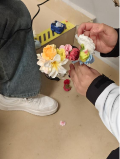 巧手生花”手作工坊第二期——“簪花围”制作正式开启。同学们在指导下学习仿制与创意设计,从选材、编扎到配色定型,亲手复现这一闽南渔女文化的标志性头饰。现场气氛热烈,一朵朵绢花在指尖绽放,传统技艺在青春手中焕发新生。