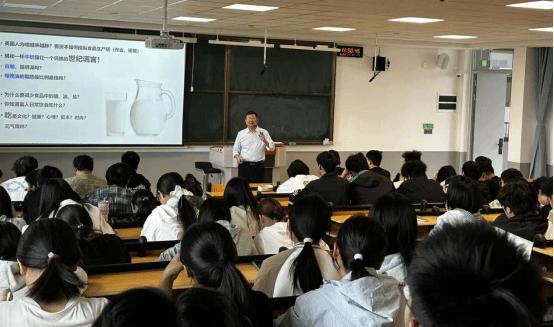 讲座中,林洪教授以“预制菜”、“功能性益生菌乳制品研发”等案例,详细解析了食品原料开发、加工工艺优化、安全检测技术、营养功能评价等专业核心模块。他特别提到,现代食品工业已从传统的“经验驱动”转向“数据驱动”,人工智能、区块链、传感技术等前沿科技正在重塑食品产业链,鼓励学生们夯实数学、物理、生物化学等基础学科知识,培养跨学科思维与实践能力。