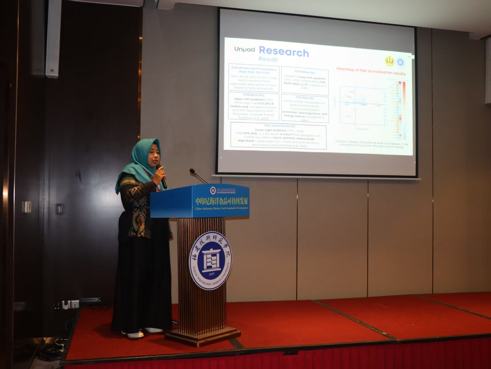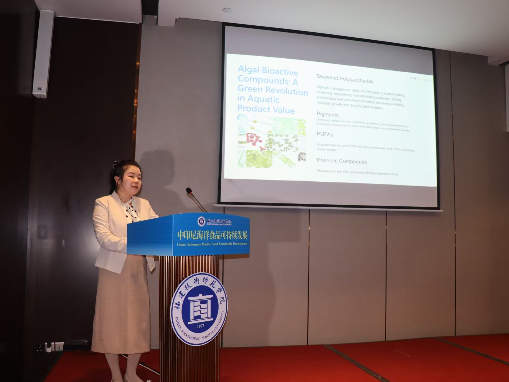 印尼学者Putri Widyanti Harlina介绍了将鱼副产品转化为高价值鱼油的最新成果,展现了资源高效利用的潜力;苏芳博士探讨了藻类活性物质在水产品全产业链的高值化应用,为产业升级提供了方向;叶翔博士则聚焦花色苷的健康功效与功能性食品研发,拓展了海洋食品的价值空间。