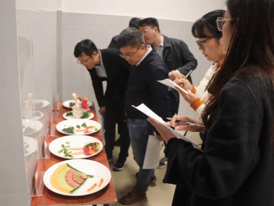 竞赛分为热菜组与拼雕组,参赛学子现场展示烹饪技艺,作品完成后不仅进行了展示与试吃环节,评委还从菜品造型、口味、营养等维度进行专业评分。活动流程井然有序,依次开展嘉宾入场、作品展示试吃、评委评分、领导致辞、颁奖环节及闭幕合影,现场氛围热烈。