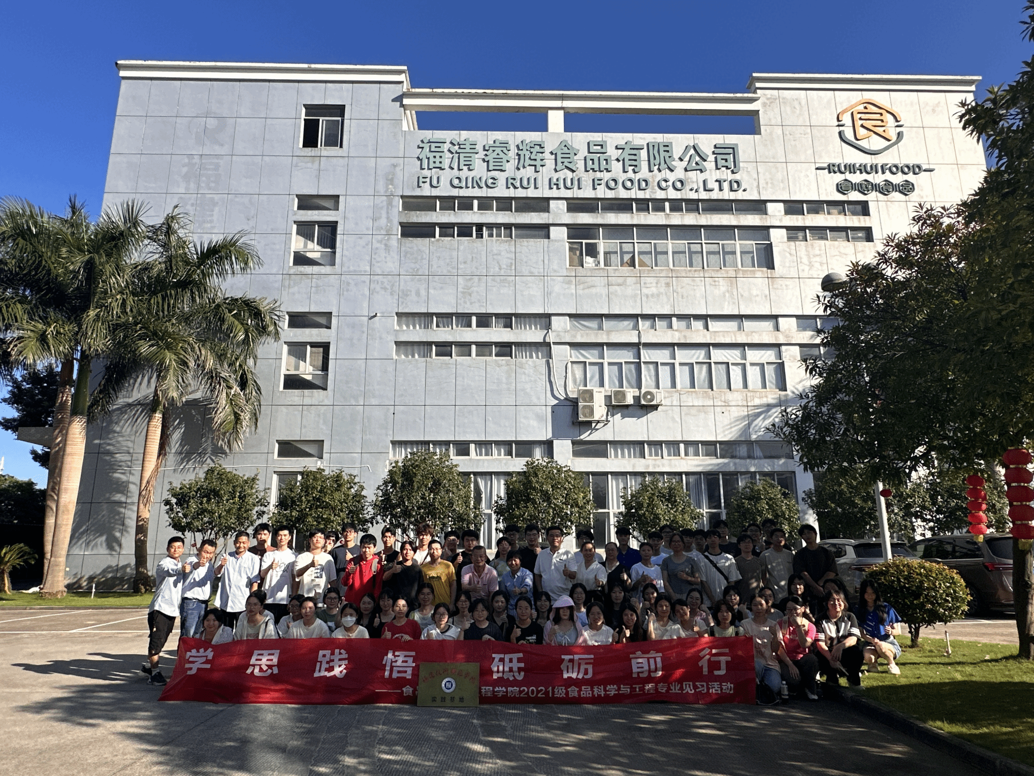 2024年7月3日下午,我院院长叶瑞洪、副院长施源德、专业教师钟剑霞和王良玉等老师带领我院2021级食品科学与工程专业学生到福清睿辉食品有限公司开展专业见习活动。