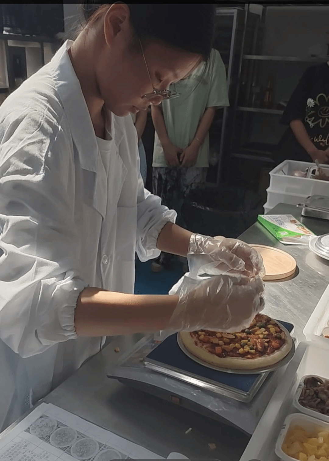 福清睿辉食品有限公司陈平总经理热情接待并详细介绍了公司发展史和企业文化。随后,陈平总经理带领师生们参观了披萨的生产过程,并教与学生制作披萨。