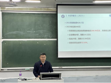 副院长施源德对教学检查工作进行汇报,指出教学问题,并提出解决措施;副院长项雷文对教师科研方面进行工作汇报,对科研课题、项目申报等方面提出要求;工会主席金美芳老师对绩效分配及教学工作量等问题进行解释说明。