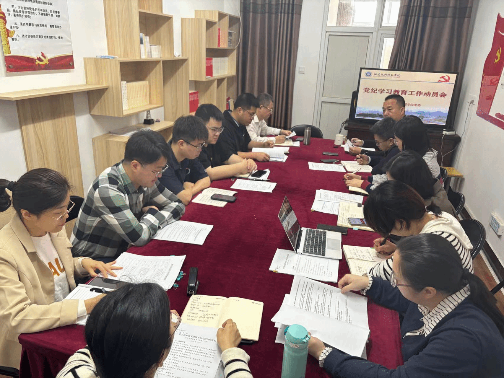 4月16日下午,我院党委在党员活动中心412会议室举行党纪学习教育动员部署会议。会议由院党委副书记林景亮主持,学院党委委员、各党支部书记、专业主任参加本次会议。