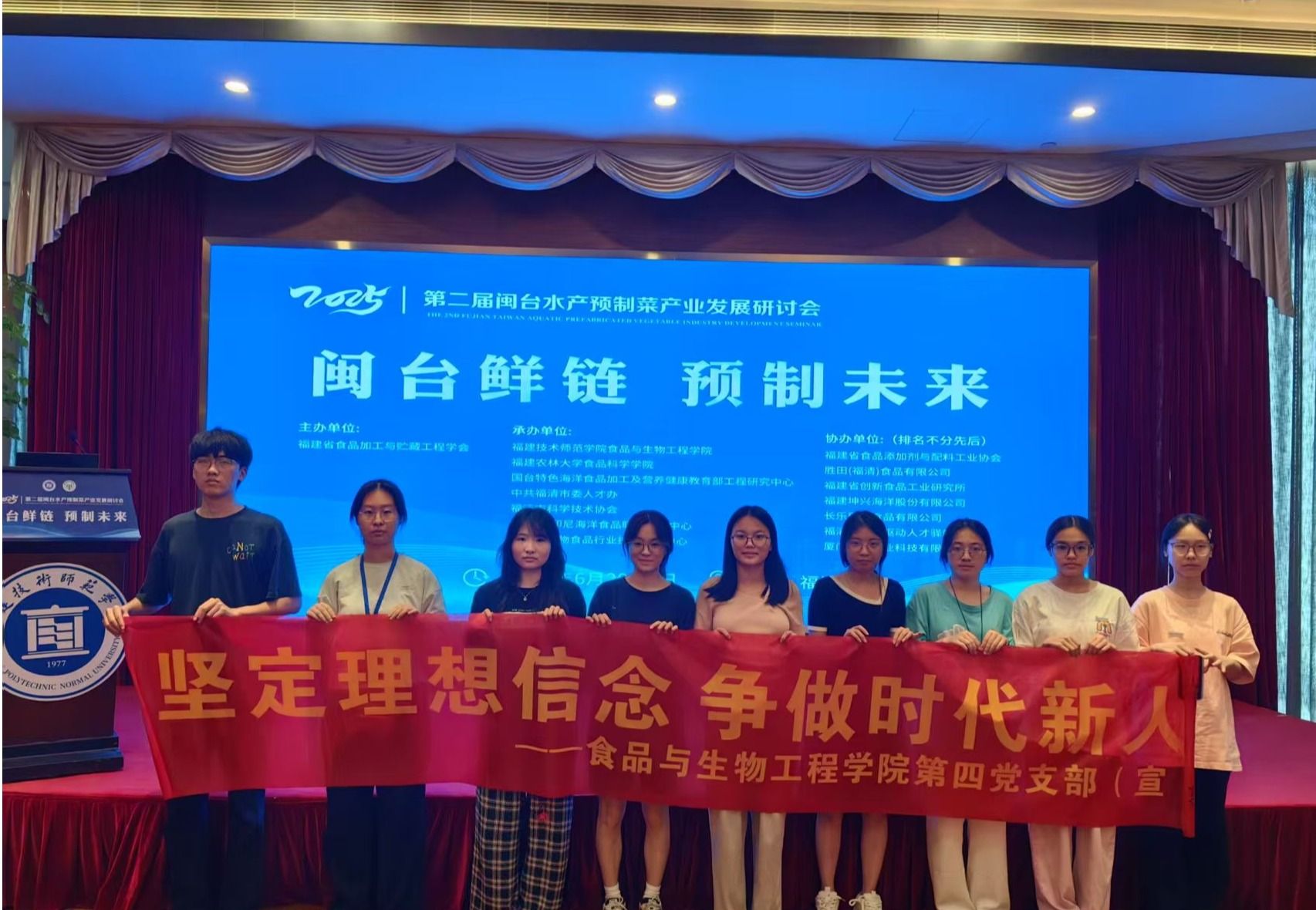 2025年6月21日至22日,由福建省食品加工与贮藏工程学会主办,我院联合福建农林大学食品科学学院、闽台特色海洋食品加工及营养健康教育部工程研究中心等七家单位共同承办的第二届闽台水产预制菜产业发展研讨会,在福清圆满举行。我院2022级辅导员李双海、2024级专升本辅导员高婧怡,组织学院第二、三、四党支部部分党员走进会议现场,开展实地研学活动。