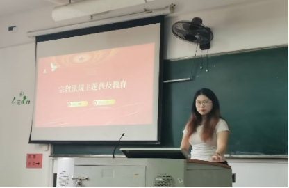 班会期间,通过播放精心准备的宗教政策法规学习视频,以生动直观的形式向同学们普及相关知识。同学们认真学习、积极互动,有力保障了班会活动的高效开展。