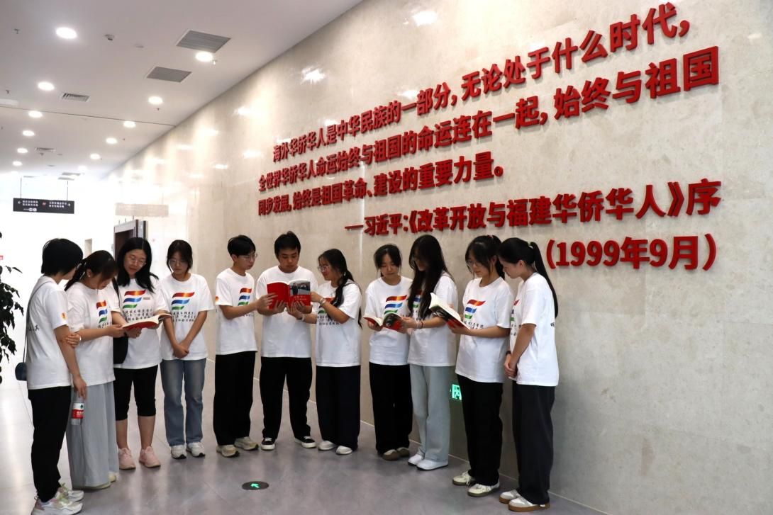 实践队沿着习近平总书记的足迹,首站抵达福清市侨乡博物馆。一进馆内,浓厚的历史文化氛围便扑面而来。队员们在三楼大侨务厅前围在一起,认真研读《习近平与大学生朋友们》。书中讲述的习近平总书记与大学生交往交流交心的故事,让队员们深切感受到习近平总书记对青年成长的高度重视和殷切关怀。随后,队员们簇拥在一幅幅珍贵照片前,专心聆听讲解。这些照片记录着习近平总书记在福清这座侨乡考察时的情景,习近平总书记对侨胞爱国爱乡精神的高度赞扬,使队员们深刻体会到侨胞为祖国建设所付出的努力和做出的巨大贡献。而一封封侨批,承载着先辈们艰辛的创业历程和深厚的家国情怀,更让队员们领悟到海外侨胞与祖国之间割不断的血脉联系。