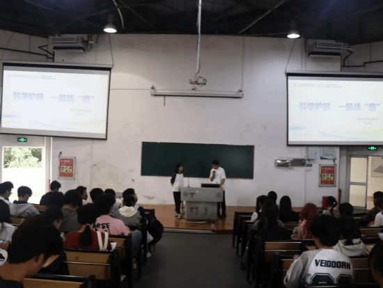 本次讲座主要从“科学护肤,一起战‘痘’”、“安全用妆,量肤而行”两个方面展开。陈丽华医师从青春痘知识着手于,介绍了常见皮肤疾病的症状、预防和治疗方法。同时,还提醒同学们要注意日常护肤,避免进入护肤误区。许艳琴医师主要讲解了护肤的基本知识,以及防范有害护肤品的方法,呼吁大家积极参与护肤行动,共同营造和谐美丽社会。讲座期间,同学们纷纷在现场咨询相关问题,各医师耐心为其一一解答。此外福清市医院的医师也为同学们普及常见的护肤知识,增强同学们辨别护肤品的能力,形成一定的安全防范。