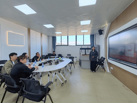 本次指导以“精准把脉、靶向发力”为核心,紧扣微团课“思想性、政治性、互动性”三大核心要求,校院双方围绕PPT设计优化、演讲技巧提升、内容主题深化等备赛重点展开深入交流。会上,我院参赛学生代表结合备战进展,汇报了微团课主题设计、内容架构、呈现形式及PPT制作等方面的筹备情况,并现场展示了部分课程片段与演讲环节。