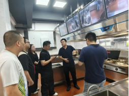 考察组实地走访了该校的北林校区饭堂厨房、中餐烹饪实训室、西餐操作间及智能教学区等,重点调研了实训室的功能布局与设备配置。该校实训设施完善,配备电磁炒锅、蒸烤一体机、高效油烟净化系统等现代化厨房设备,并依托智能录播教学设备实现操作过程可视化,为实践教学提供了高效支持。