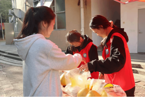 活动现场,由各支部师生党员志愿者、院团委“小手拉大手”青年志愿者服务队共同组成的志愿服务团队早早布置好了义卖展位。志愿者们分工协作,热情洋溢地向过往师生介绍柚子的产地与品质,并贴心地提供试吃体验。颗颗金黄的柚子,承载着果农辛勤耕耘的期望,也深深牵动着校园师生的爱心。老师们与同学们纷纷停下脚步,踊跃选购,以实际行动解果农之所急,为助农公益贡献自己的一份力量。