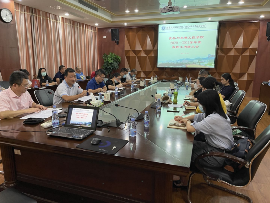学院党委书记郑向峰布置了2020-2021学年师德考核工作和教职工年度考核工作并代表学院党政班子做工作报告,党政领导依次进行述职报告;之后开展了党政班子学年度考核测评、学校中层干部学年度考核测评和党政班子成员述责述廉评议。