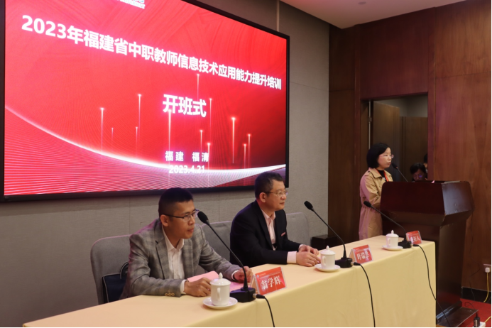 2023年4月21日,由我院承办的2023年福建省中职教师信息技术应用能力提升培训在福清举行开班仪式。福建省职教师资培训中心秘书长、继续教育学院副院长翁学辉,学院院长叶瑞洪,培训项目组全体工作人员出席本次开班仪式。来自全省9所中职院校的38名专任教师参加此次培训。