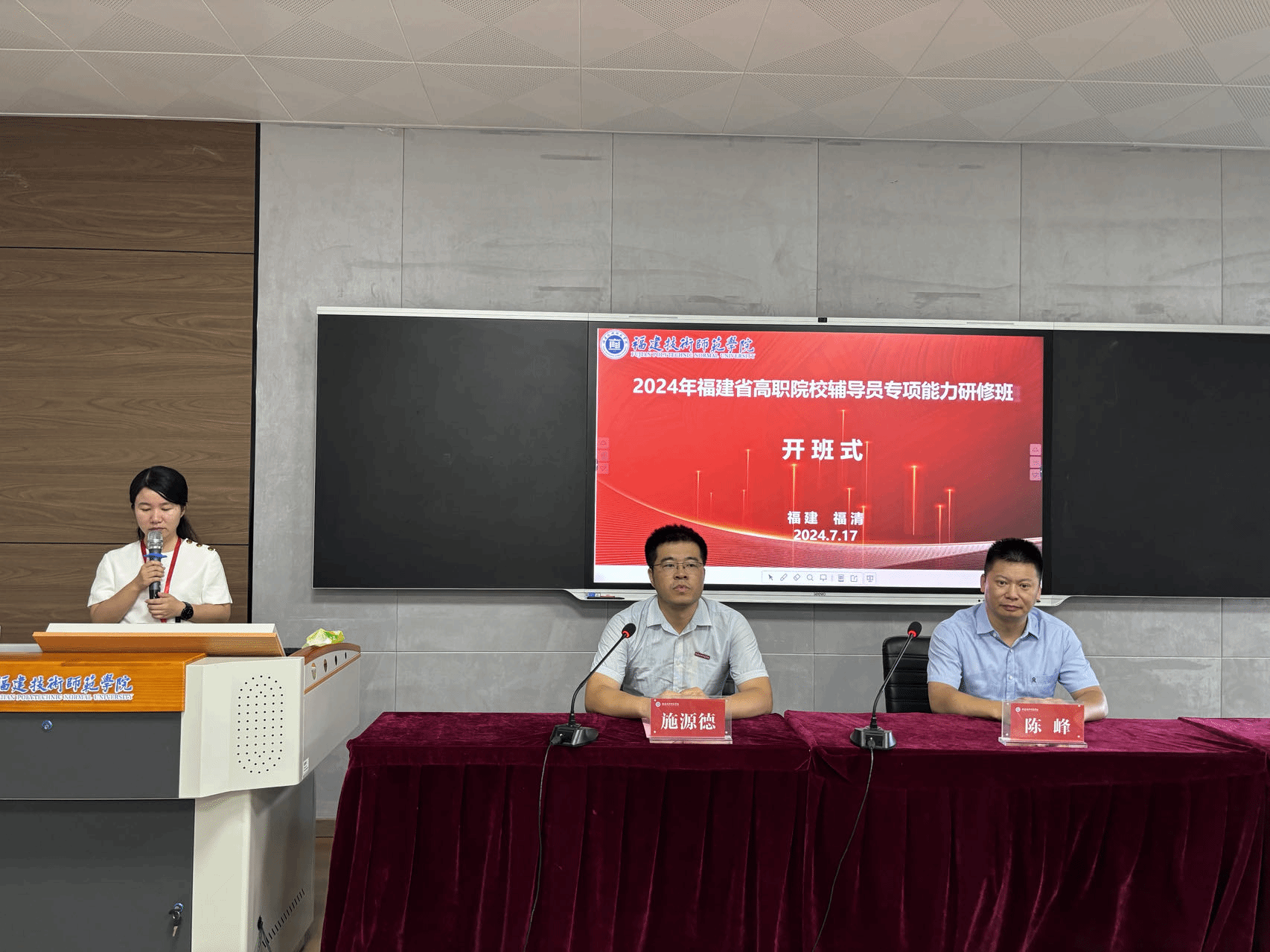 7月17日,由省教育厅主办、我校承办的2024年福建省高职院校辅导员专项能力研修班在石竹山校区举行开班仪式。食品与生物工程学院副院长兼项目负责人施源德,福建技术师范学院继续教育学院培训科科长陈峰出席本次会议并讲话。本次培训学员是来自全省各地35所高职院校的50名教师,继续教育学院、食品与生物工程学院负责人及项目组全体工作人员参加开班式。
