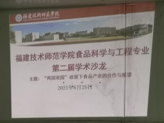6月25日下午,福建技术师范学院食品学院食品科学与工程专业第二届学术沙龙于在我校石竹山校区科技楼召开。出席本次交流会的有福清功能区管委会经贸处方仁浩处长以及相关科室人员、金谷食品(福州)有限公司董事长薛天平、福清茂德无纺科技有限公司董事长林茂群、我院党委书记郑向峰,行政主要负责人叶瑞洪,行政负责人项雷文以及食品专业全体老师。本次学术沙龙以“两国双园”政策下食品产业的合作与展望为主题进行。
